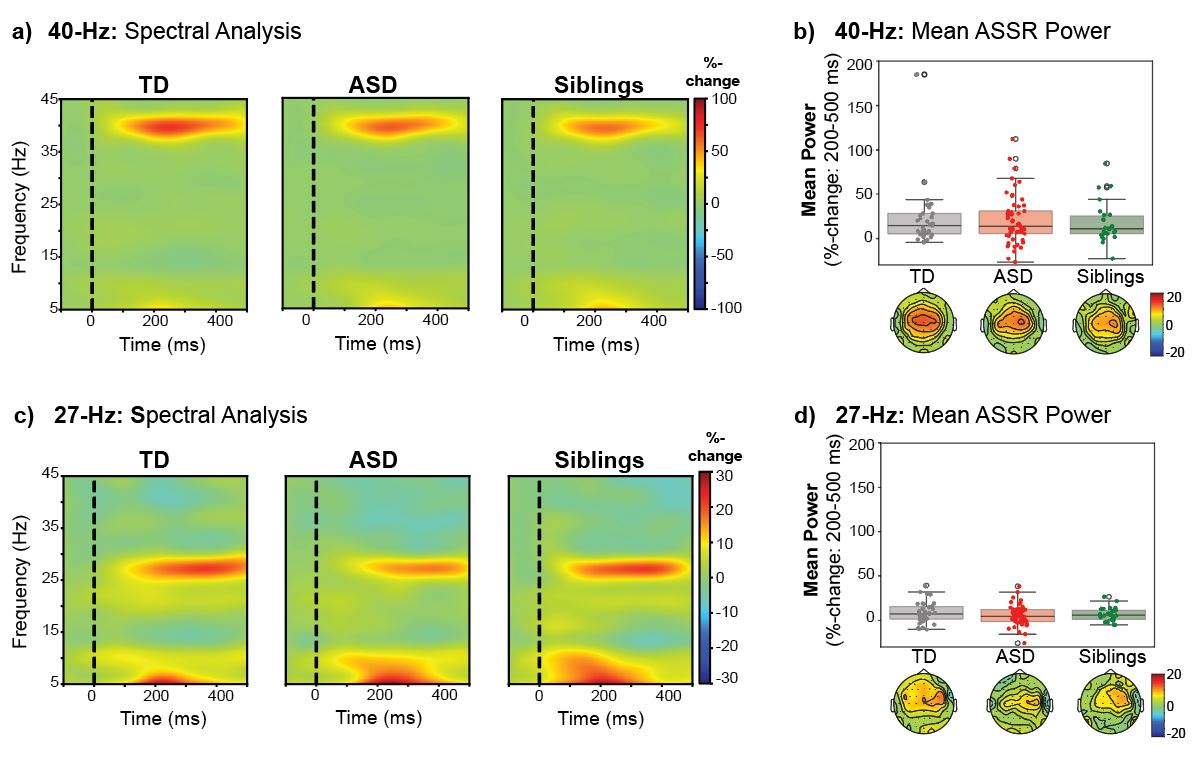 In a well-powered EEG study of auditory-steady-state-response (ASSR) in autism spectrum disorder (ASD), we observed an ASD-specific reduction in the auditory evoked response