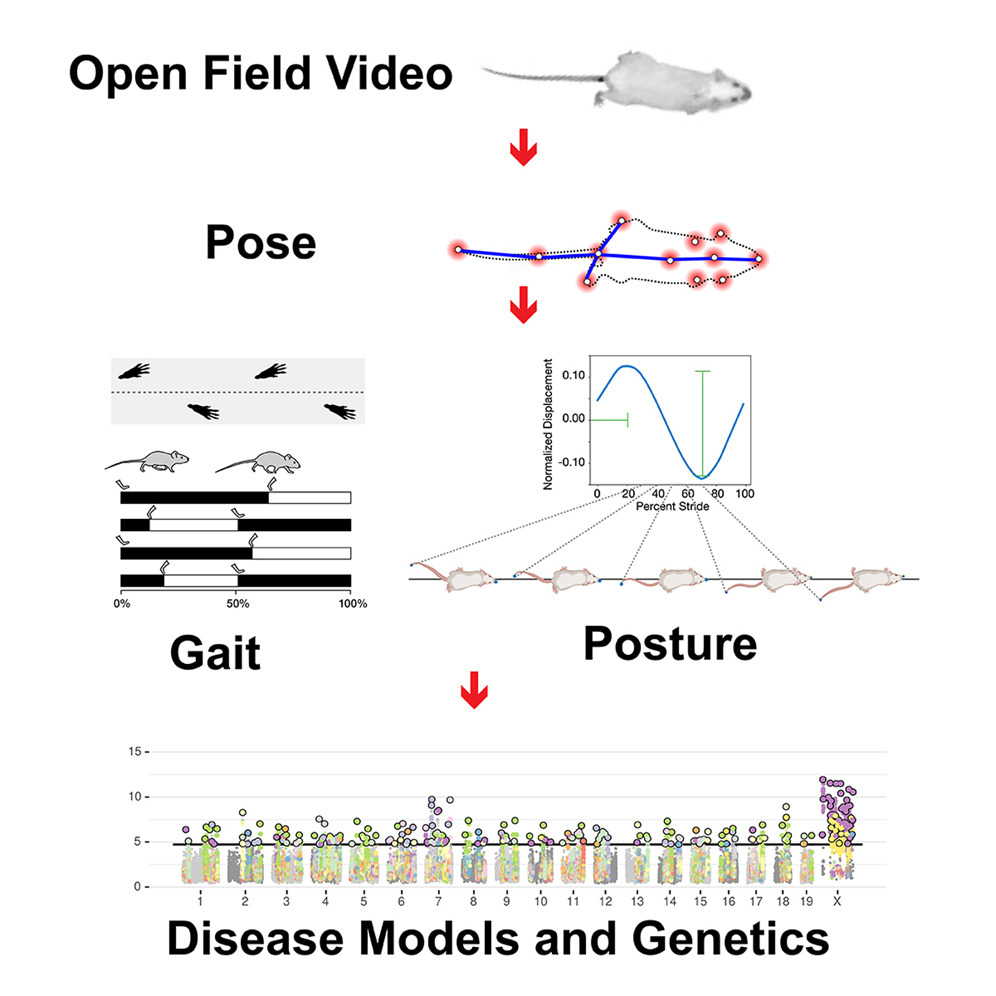 quantification across 62 strains and several models of neurodevelopmental disorders. We found that gait and posture traits are highly heritable, identified distinct movement classes, and